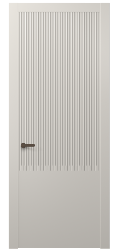 Дюна — коллекция дверей украшена частой прямой фрезеровкой, которая напоминает волны дюн в пустыне. Созданная на поверхности полотна текстура привлекает взгляд и добавляет глубину пространству. Двери Дюна — это сочетание современного дизайна и вдохновения живописными природными ландшафтами.